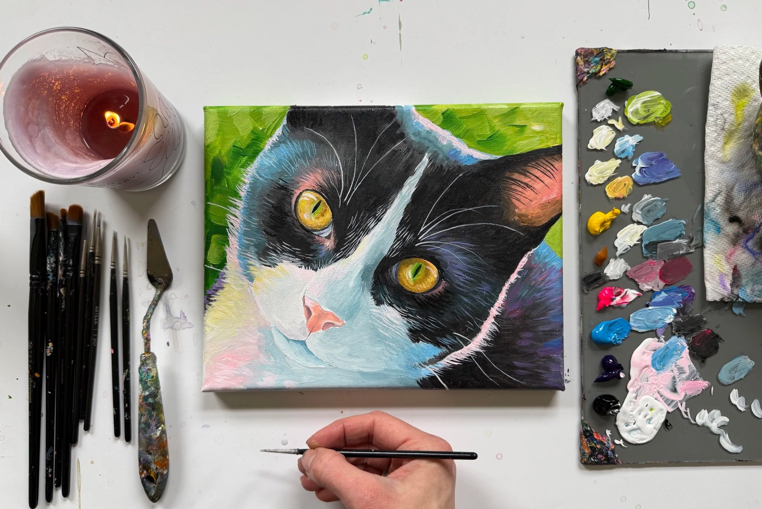 Scroll down to access all this and my FREE art therapy-based Tuxedo cat tutorial using acrylics!